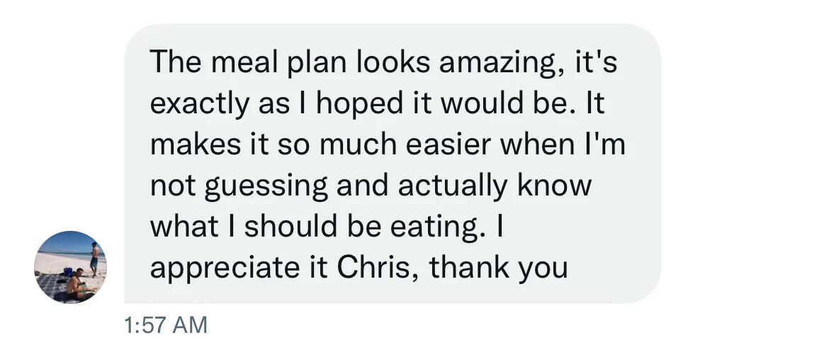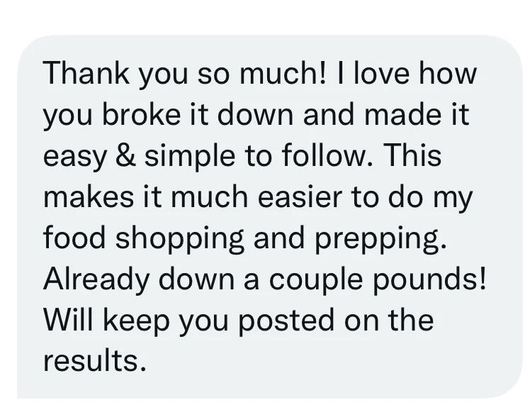 I'll take the time to create a simple, easy-to-follow meal plan suited FOR YOU, according to your needs.