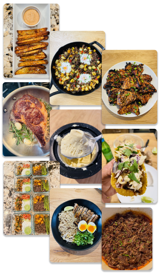 Personalized meal plans tailored to your tastes and aligned with your goals, you'll eat delicious meals night after night. Use my methods and meals to reduce your cooking time and spend less than 2 hours per week on it... guaranteed!